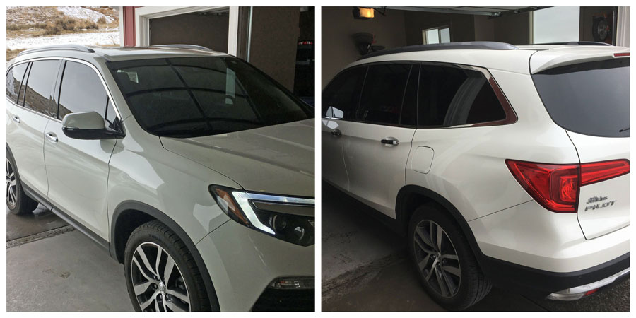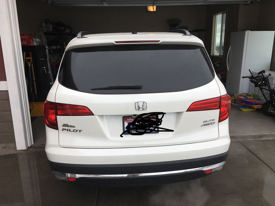 South’s car is a white 2018 Honda Pilot with license plate number 8BMD545. There were lots of facemasks hanging on the mirror, she says, and a United Auto sticker on the back.