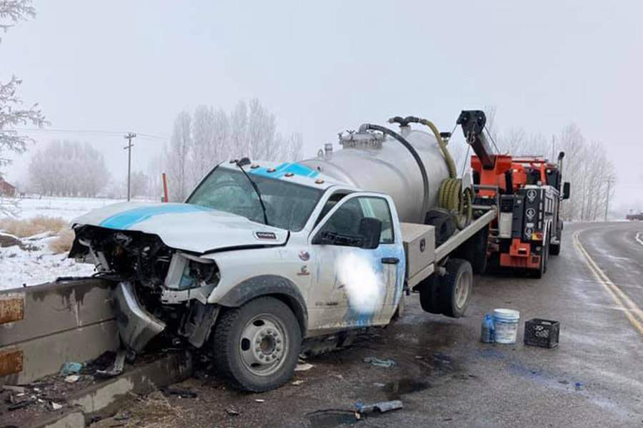 The crash occurred at 2121 West 145th North just south of the Osgood Store around 11 a.m., according to an Idaho Falls Fire Department news release. A truck hit the bridge embankment.
