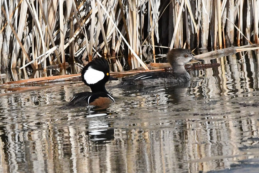 The scenes change daily if not hourly at the WMA. It appears the herd of elk have moved north across Idaho Highway 33, and they have been replaced by new residents and visiting birds. A pair of Hooded mergansers were the first to greet me as I entered the marshes at Pond #2. American coots also arrived in the first pocket of open water on the ice-covered pond.