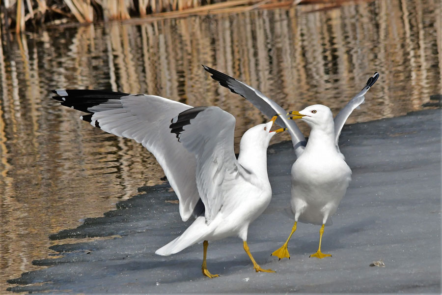 As I was leaving the marsh, I noticed new arrivals. The spot where I had photographed the Hoodies had about 100 Ring-billed gulls dining on rotting catfish. They were so delicious that some of the gulls were arguing over them.