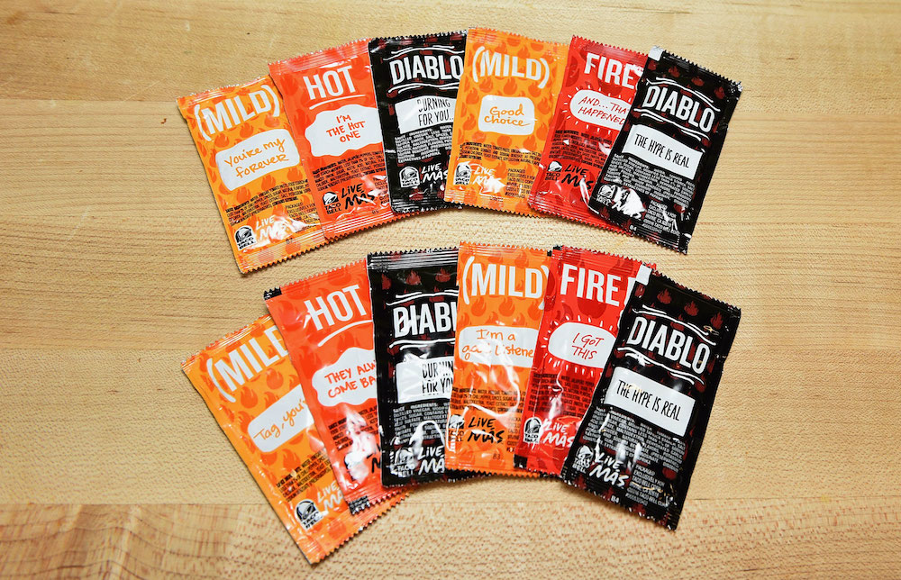 That’s soon changing: The fast food chain is partnering with recycling company TerraCycle to give its packets a “spicier second life that doesn’t involve a landfill,” Taco Bell said in a press release.