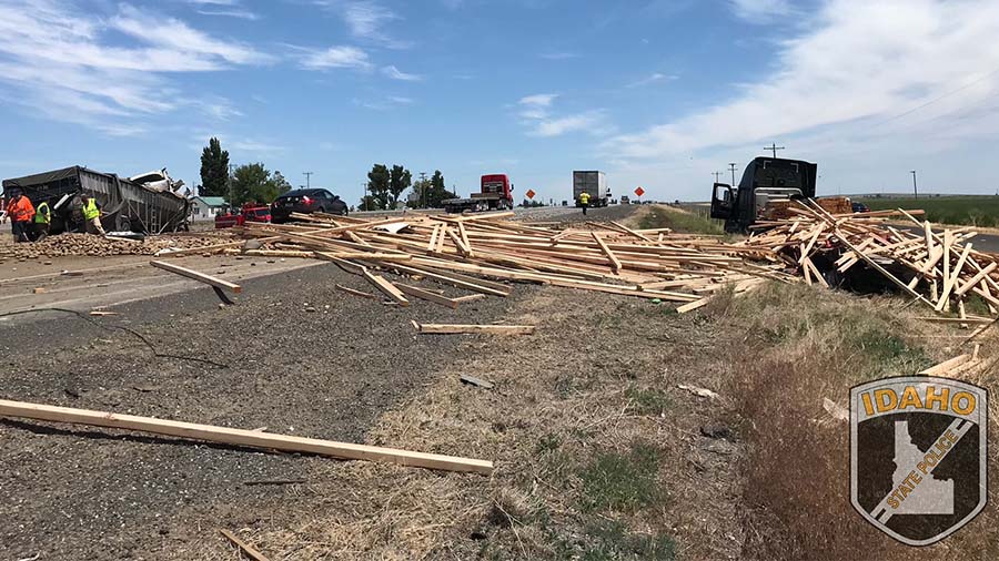 Idaho State Police have released new details about a crash that left semi-truckloads of potatoes and lumber across Interstate 84 on Thursday.