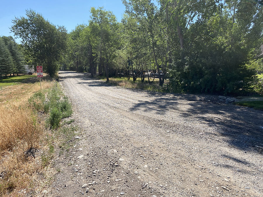 The section of 465 North near 4100 East has beautiful homes, towering green trees and two bridges that cross water. The crossroads on 4100 East and 465 North indicate both a private and public road. 4100 E has a green street sign showing that it’s public, while 465 North has a blue sign, which means it’s private. Signs posted before the dirt road read, “No trespassing. Private road. Residents only.”