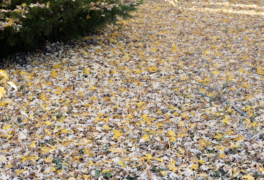 - Don’t allow the leaves to form a mat on the lawn through the winter. This creates a nice area for winter molds to form on the lawn. Thick mats of leaves can kill the grass, creating spotty lawns.