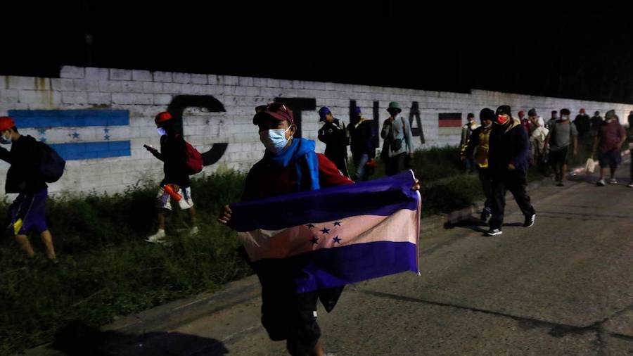 After several hours of travel Saturday, some migrants managed to cross into Guatemala through illegal border crossings, while several hundred were stuck on the Honduran side of the border because they did not have enough money to pay the roughly $50 for a PCR test for coronavirus demanded by authorities.