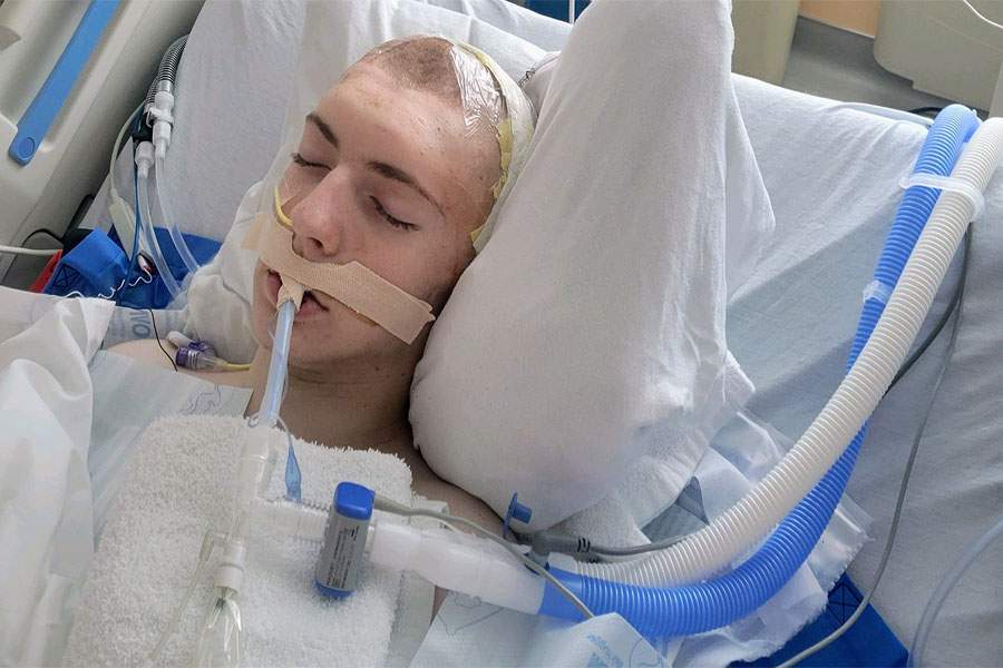 “His brain was sitting in sacs of pus,” Hashagen explained. “The brain surgeon told us about how he had to open up from the top part of the left side of the head, take off the bone there, and then he had to go down to the bottom behind his ear and open up that area … and release the pressure.”