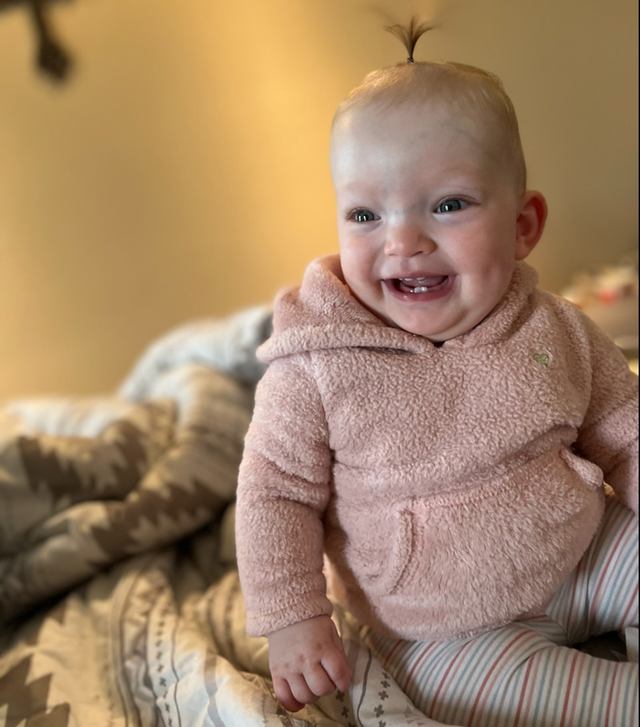 “She made a huge milestone the other day. She got up on her hands and knees for the first time. That was something that we thought would never happen,” Alisha said. “She’s defying my expectations and showing every day that she is so strong and resilient and determined and I’m very proud of her.”