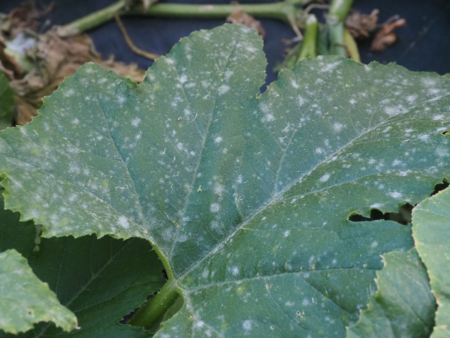 Powdery mildew in eastern Idaho is most common in the cucurbits — cucumbers, squash, pumpkins, melons, and gourds.