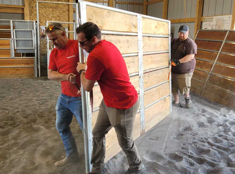This year, encouraged by Stephanie Thalin, the branch manager in Driggs, Key Bank rallied all the troops and senior bank members traveled from Salt Lake City, Rexburg, Idaho Falls and Boise to construct new barn stalls. Eleven Key Bank participants rolled up their sleeves under a perfect Teton Valley day.