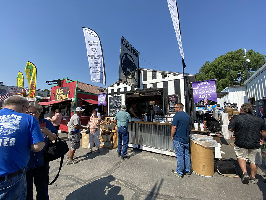 Today, we’re stopping by C. R. Fish. The business has been around the fair for years and won first place in the 2022 Fairest of Them All Entree for its smoked salmon on a bagel. It’s a delicious bagel with dill cream cheese and smoked salmon. The salmon is smoked in Pocatello at Del Monte Meats and is topped with cilantro and lemon pepper.