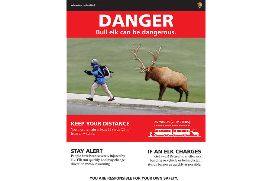 “Stay alert!” the park said in a news release. “People have been severely injured by elk. Elk run quickly and may change direction without warning.”
