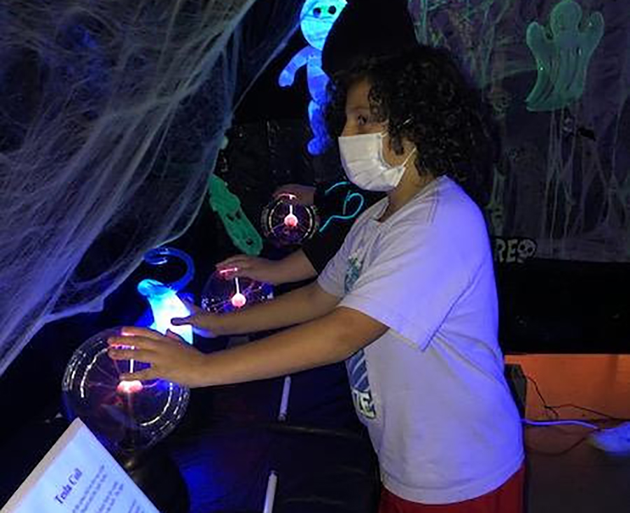 The Haunted Science Lab features a Van DeGraaf generator, lasers, and multiple educational and interactive science activities designed to delight, fright, and educate kids of all ages. Some exhibits use the same principles as Disneyland’s Haunted Science Mansion, except they are explained.