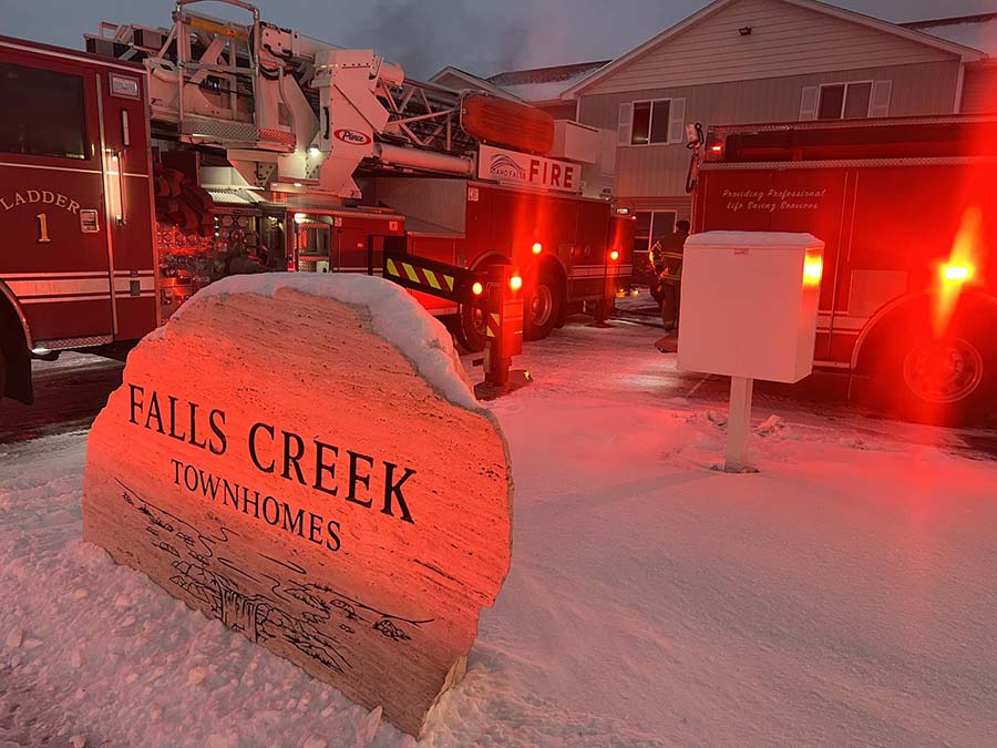 IDAHO FALLS — Firefighters are at a fire at the Falls Creek Townhomes and are asking people to avoid the area.