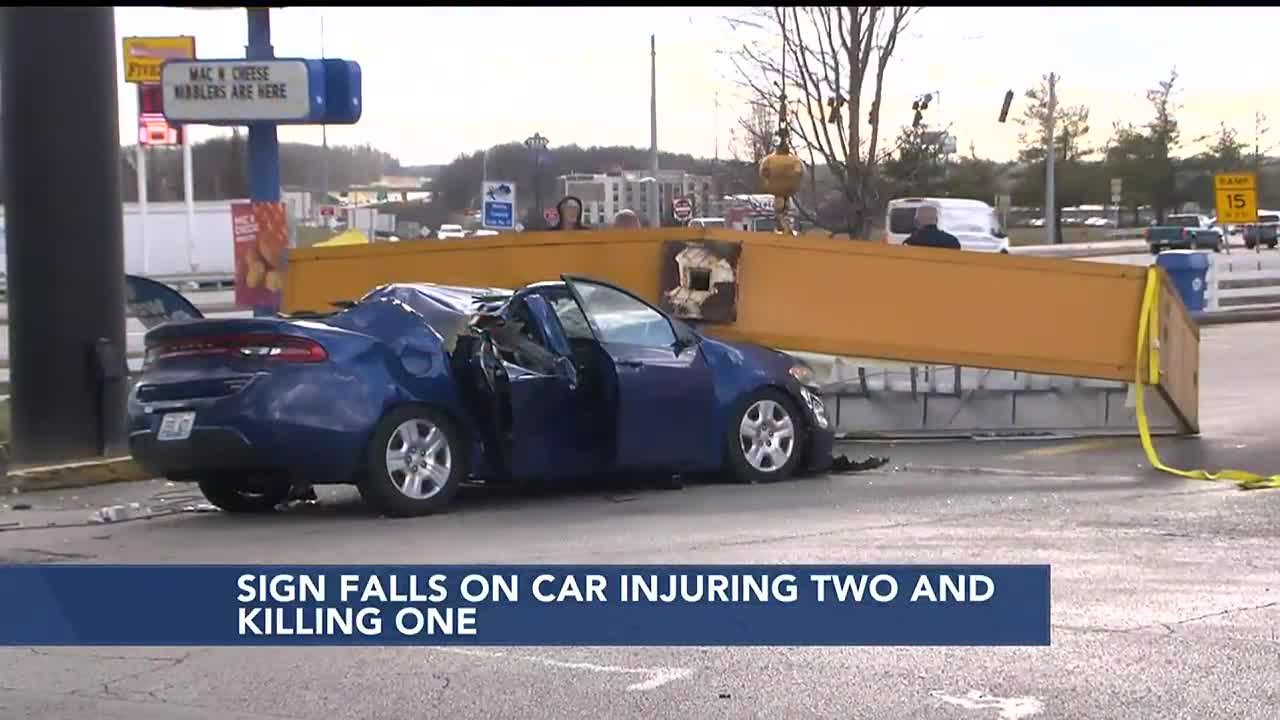 The cause of death was listed as “blunt force injuries” when the restaurant sign fell on her vehicle, according to the release.