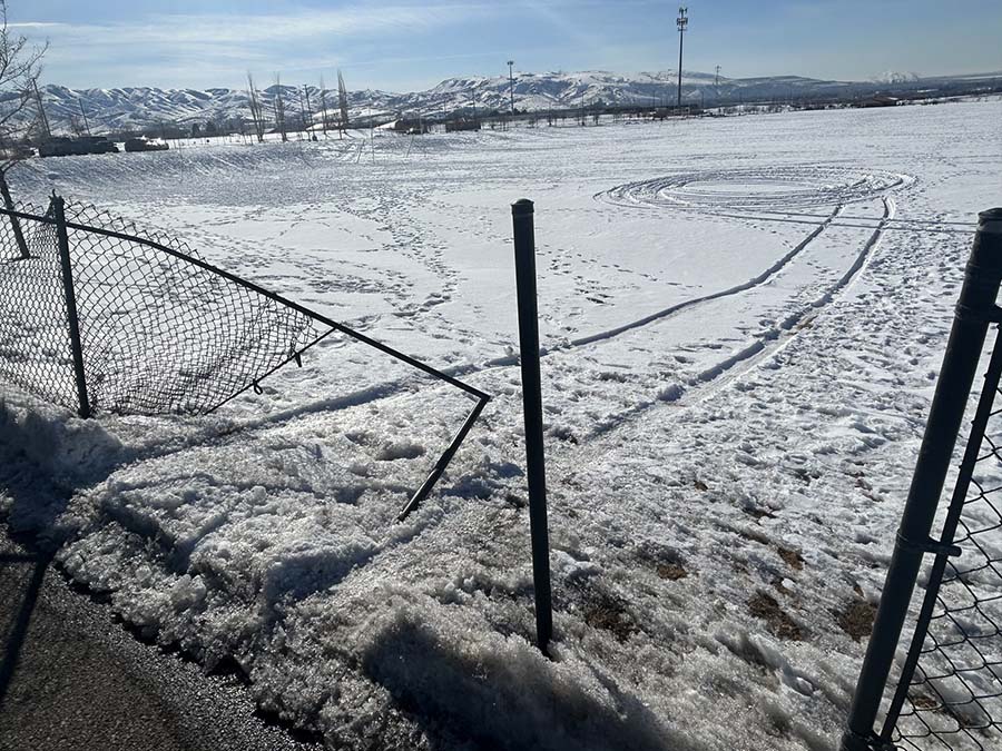 Portneuf Wellness Complex fence damaged, driver spins donuts on soccer fields