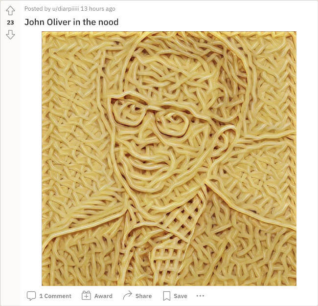 Oliver has not committed to using any of the material, but true to form, he himself gave users his blessing to continue posting his image on Reddit and provided even more fodder for them to plaster across the site.