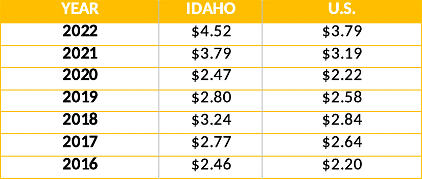 Here’s a seven-year retrospective on Labor Day gas prices for Idaho and the national average: