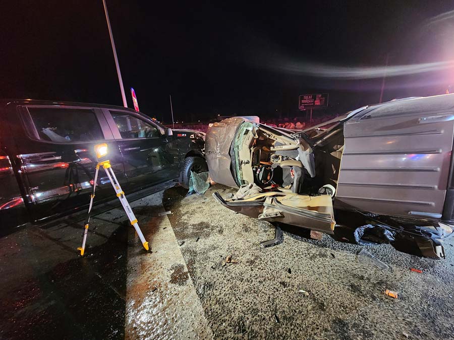 According to a picture from the Blackfoot Police Department, there was a vehicle that landed on its side. It looks crushed and the windows were shattered.