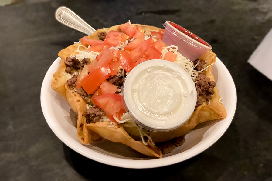 But there’s food for non-burger lovers as well. The Rim Rock also serves a taco salad, served in a fresh tortilla with beef, lettuce onions, tomatoes and cheese.