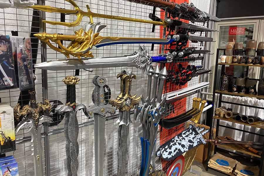 For people who want to spar with their friends, they can find replica foam swords as well, but these don’t fall apart easily, according to Diaz. They have a steel rod core and the exterior is made out of durable wrestling mat foam.
