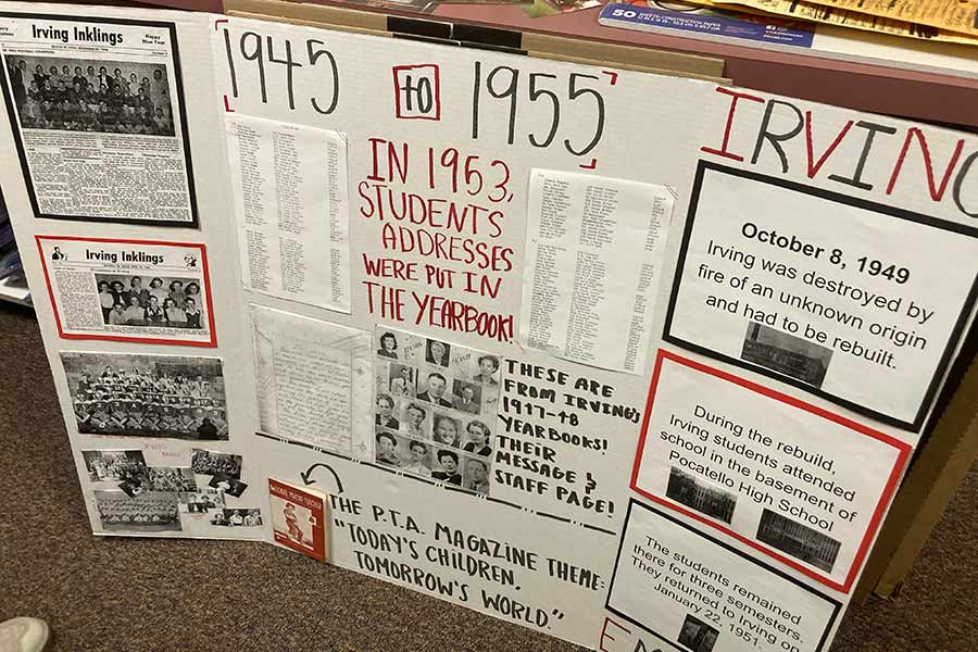 A poster board showing Irving Middle School’s history from 1945 to 1955. | Logan Ramsey, EastIdahoNews.com