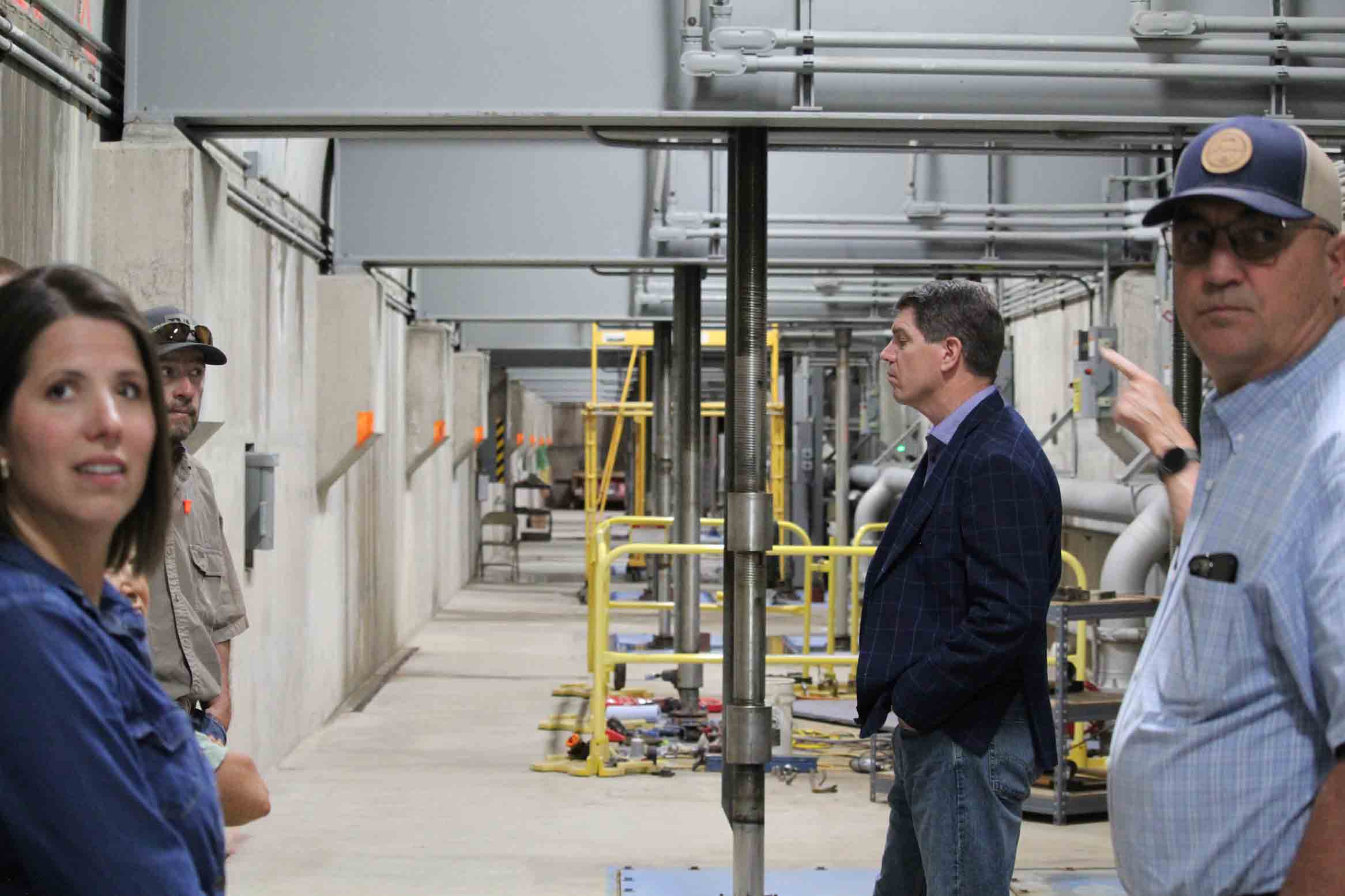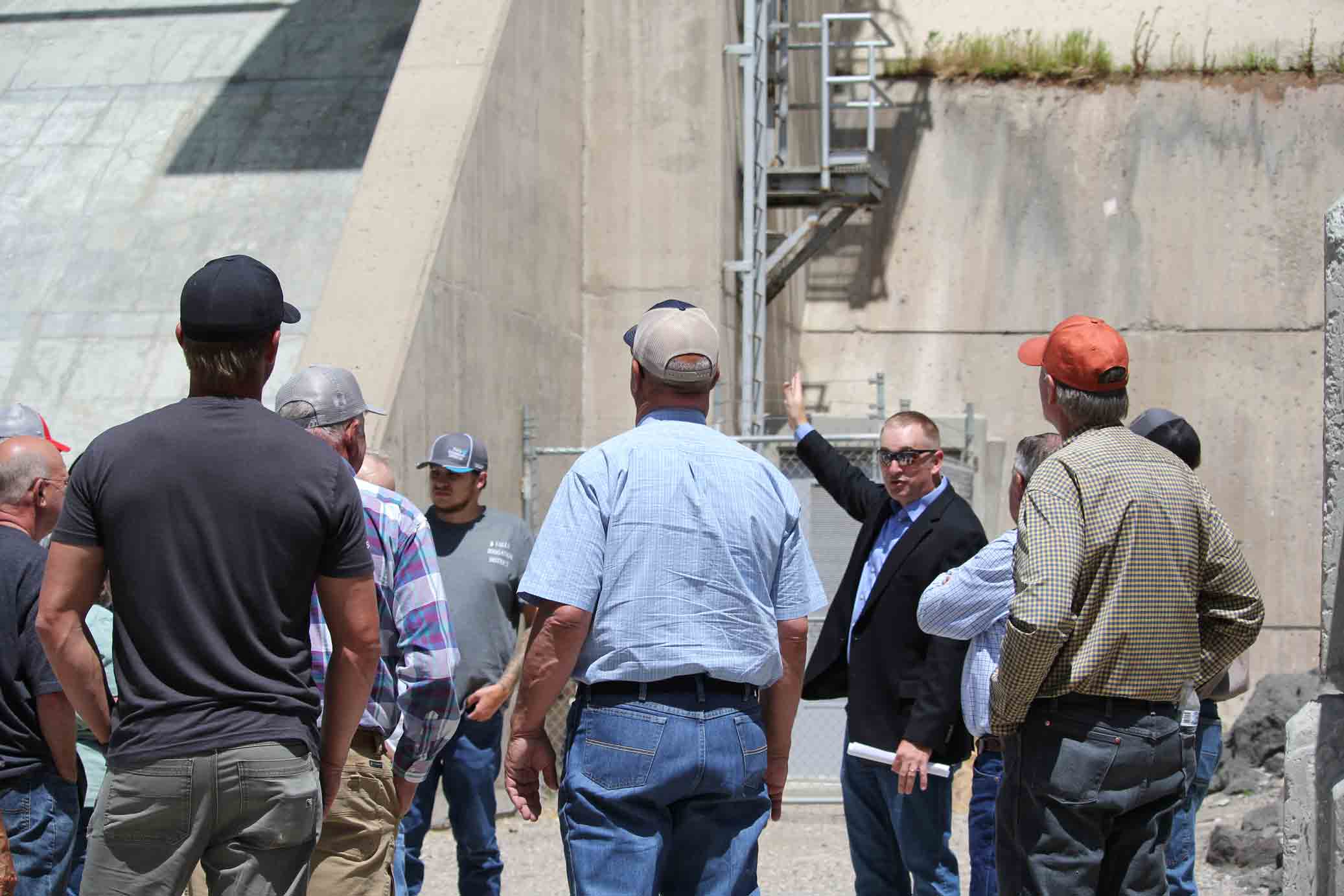 After the governor’s remarks, a group of various water officials and elected leaders went on a tour of the dam, guided by Ryan Bliss, the Upper Snake Field Office Operations and Maintenance manager. The group walked up to get a view of the spillway, then entered the cavernous outlet gallery and then finished the tour by taking the access stairs all the way to the top of the dam.