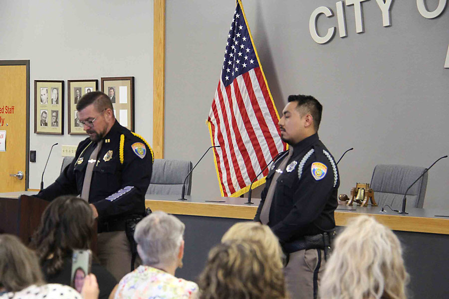 While Officer Tyler Clemons couldn’t be in attendance at the Tuesday ceremony, he and Officer Arturo Martinez received awards for an incident they responded to together where a woman had consumed alcohol and antidepressants in an attempt to commit suicide. The officers, who had prior knowledge of her mental health issues, spoke with her, and she told them what medications she had taken and where the bottles were.