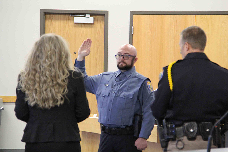 Joshua Perkins is sworn into the Pocatello Police Department.