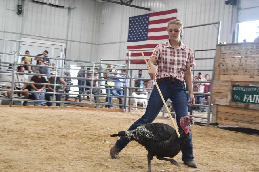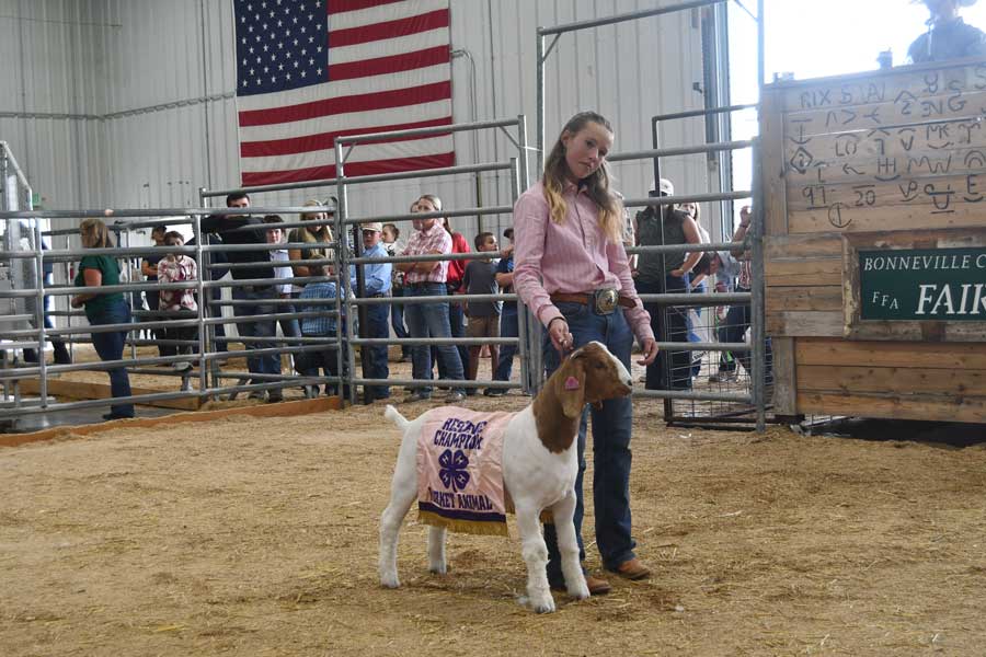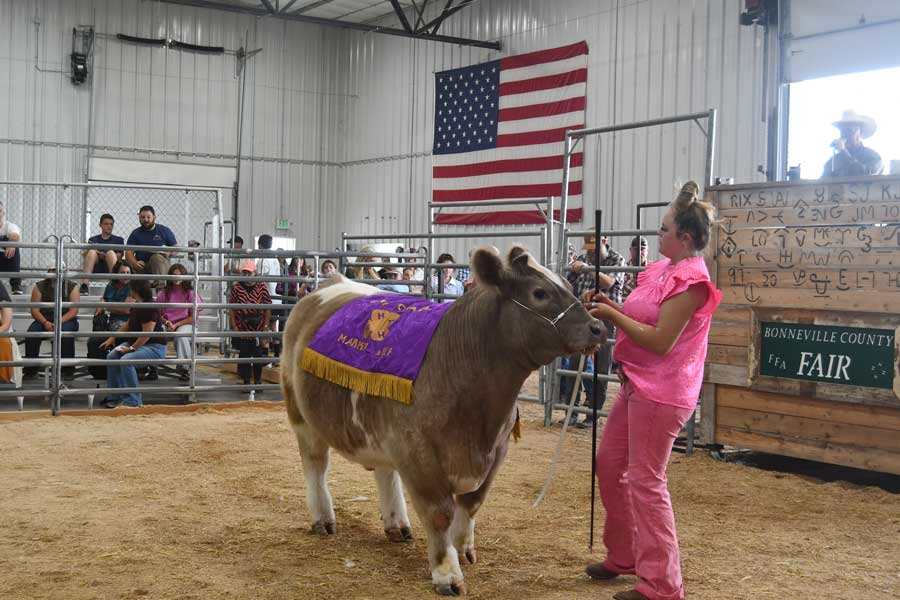 Deviney Freeman shows her Grand Champion steer Thursday at the Bonneville County Fair Market Animal Sale. The steer sold for $4,700. | David Kennard, EastIdahoNews.com.comKyanna Robinson coaxes her turkey around the sale yard Thursday at the Bonneville County Fair Market Animal Sale. | David Kennard, EastIdahoNews.comBridget Roberts walks her turkey and listens to bids roll in Thursday at the Bonneville County Fair Market Animal Sale. | David Kennard, EastIdahoNews.comSage Rasmussen shows her market swine during Thursday’s Bonneville County Fair Market Animal Sale. | David Kennard, EastIdahoNews.comAuction Ringman Dr. Steven Boyle, calls in the bids Thursday at the Bonneville County Fair Market Animal Sale. | David Kennard, EastIdahoNews.comAuctioneer Arnold Callison calls out prices Thursday at the Bonneville County Fair Market Animal Sale. | David Kennard, EastIdahoNews.comRilee Sutton and her Reserve Grand Champion Turkey strut around the sale ring Thursday at the Bonneville County Fair Market Animal Sale. | David Kennard, EastIdahoNews.comEllie Ford walks her Reserve Grand Champion swine before buyers on Thursday at the Bonneville County Fair Market Animal Sale. | David Kennard, EastIdahoNews.comKadence Shurtz and her Reserve Grand Champion Sheep bring in bids on Thursday at the Bonneville County Fair Market Animal Sale. Her project earned her $1,400. | David Kennard, EastIdahoNews.comEmma Butikofer’s Reserve Grand Champion Goat brought $900 on Thursday at the Bonneville County Fair Market Animal Sale. | David Kennard, EastIdahoNews.comKadence Shurtz shows her Reserve Grand Champion beef steer on Thursday at the Bonneville County Fair Market Animal Sale. | David Kennard, EastIdahoNews.comA teary-eyed Artemis Glick moves her beef project around the sale ring. The No. 1 carcass steer brought $4,300 Thursday at the Bonneville County Fair Market Animal Sale. | David Kennard, EastIdahoNews.comEnzo Burke, 9, gets some last-minute advice from his father Rhett Burke Thursday before bidding starts at the Bonneville County Fair Market Animal Sale. | David Kennard, EastIdahoNews.comBruce, the market steer, gets a walk around the sale yard by owner Kimberly Cramer. Cramer sold her project for $4,100. | David Kennard, EastIdahoNews.comLandry Croft checks the sale sheet for her place in Thursday’s auction at the Bonneville County Fair in Idaho Falls. | David Kennard, EastIdahoNews.com