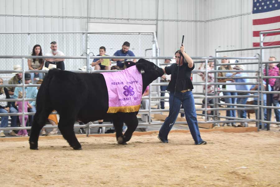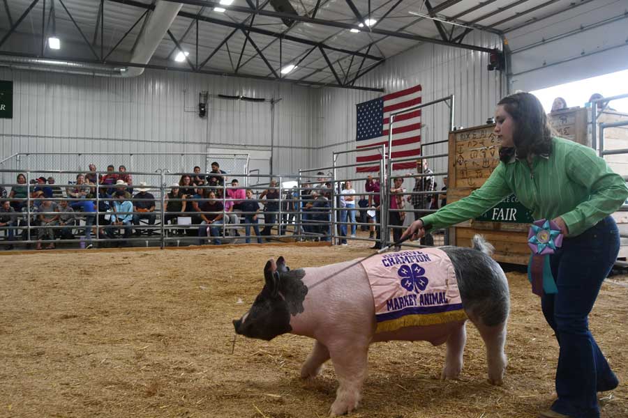 Deviney Freeman’s Grand Champion Beef cow was the star of the show, bringing $4,700. Other Beef projects brought in similar winning bids, including Artemis Glick’s No. 1 Carcus Beef, which brought $4,300. Kimberly Cramer’s Beef steer, Bruce, brought in $4,100.