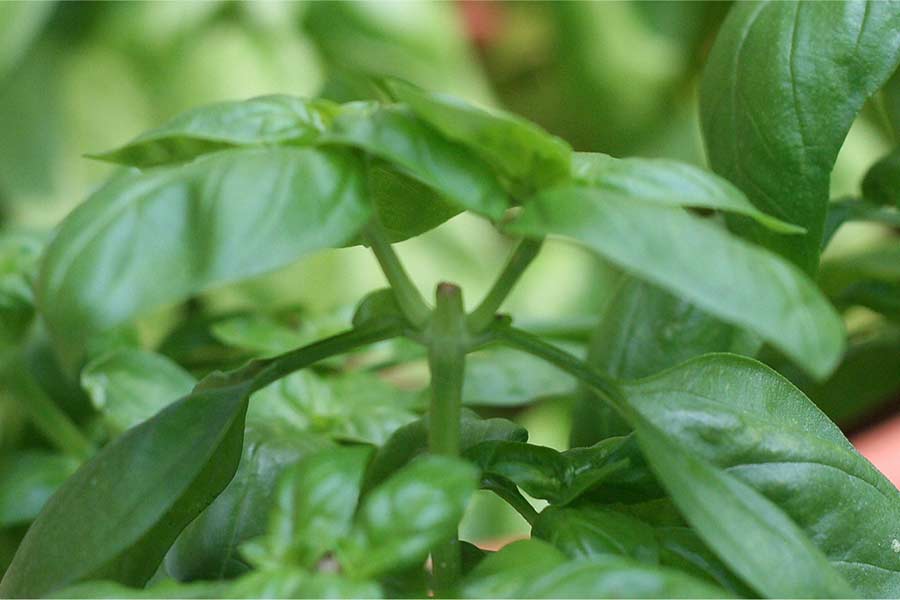• Basil: regularly remove flower buds and harvest leaves to keep the plant bushy