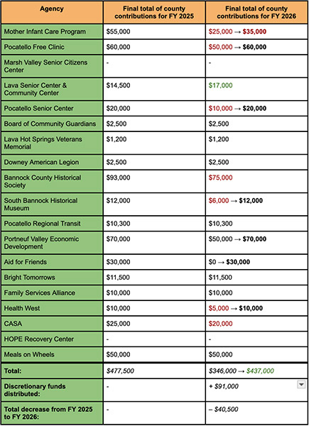 POCATELLO – The commissioners have voted in favor of distributing previously unused funding to most of the nonprofit agencies that saw their funding reduced under next year’s budget for Bannock County.