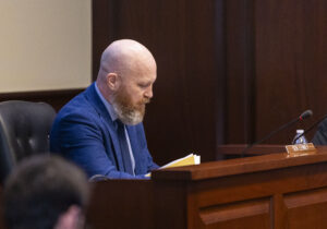 Sen. Brian Lenney, R-Nampa, listens to proceedings of the Senate Health and Welfare Committee on March 10, 2025, at the Idaho Capitol Building in Boise. | Pat Sutphin for the Idaho Capital Sun