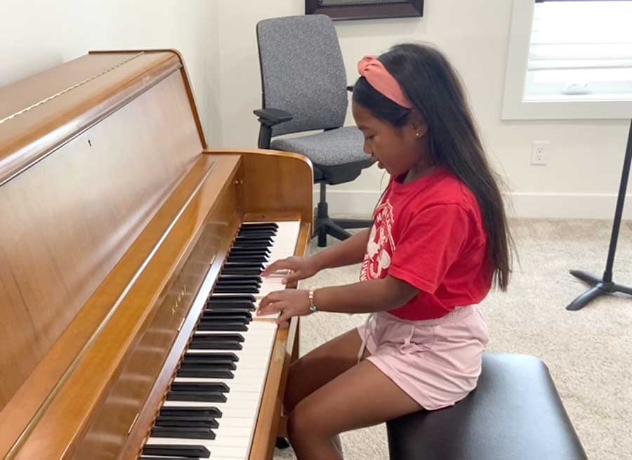 It’s no surprise that even at 8 years old, Clara knows her way around a piano. Both of her parents are professional musicians, and she has been raised around music her whole life. Mom Lisa is the principal violist for the Idaho Falls Symphony and teaches private lessons in their home and at Brigham Young University-Idaho, and dad Tyler is a stage manager and recording specialist for the university, where he also teaches an audio engineering class.