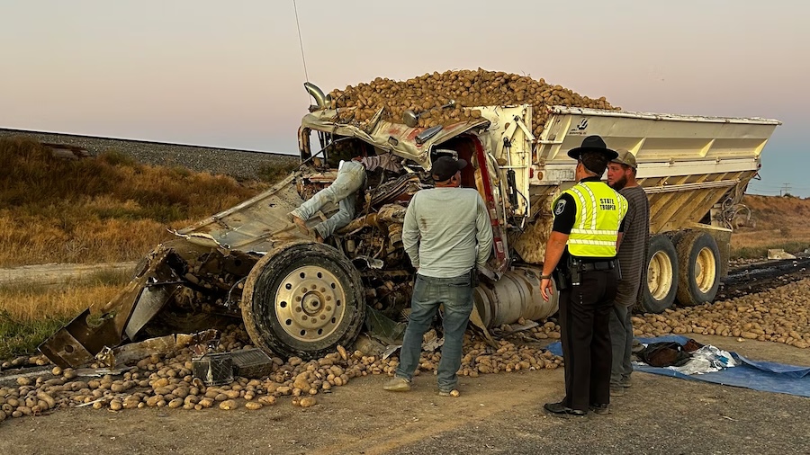 Two rushed to hospital after trucks hauling potatoes crash near Rupert