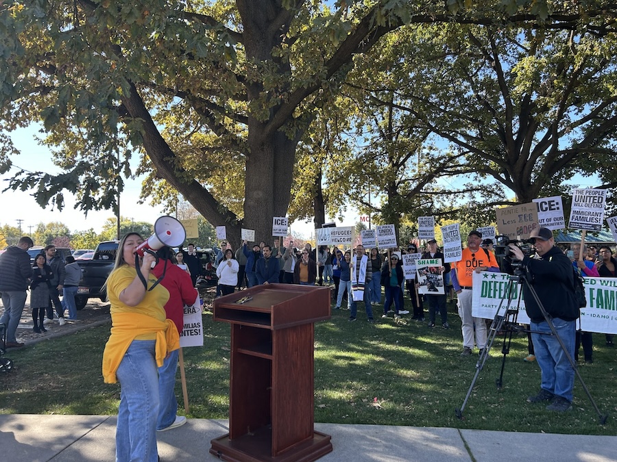 “The government came in full force, military-style, helicopters, drones and arrested and handcuffed, everyone … including children,” Morales told reporters at a news conference near the Canyon County Courthouse in Caldwell. “No person, no Idahoan, no American should ever accept whenever a government does this to its own people.”