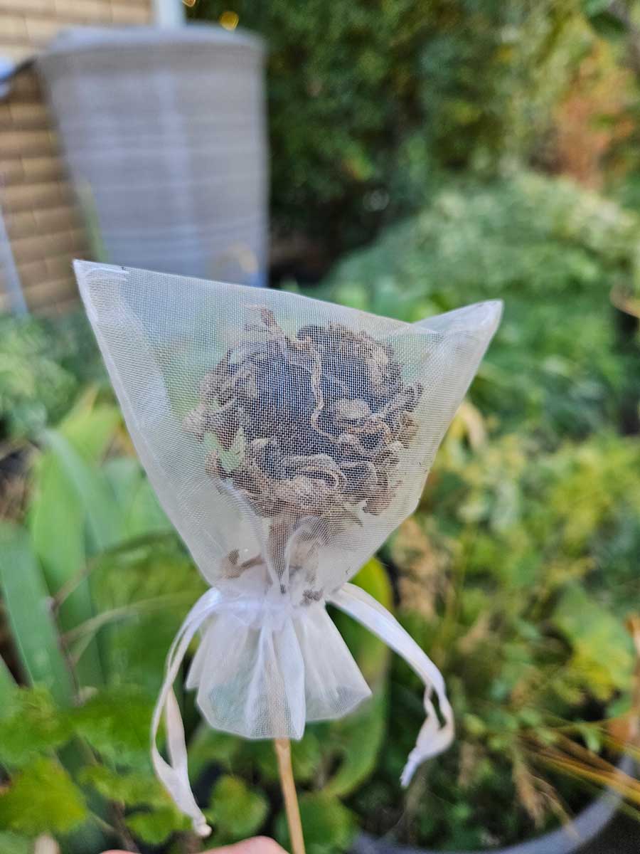The adventurous seed saver can buy mesh or cloth pollination bags to cover self-pollinating flowers that tend to out-cross. The resulting seeds from this head will be the same color and type as the parent.