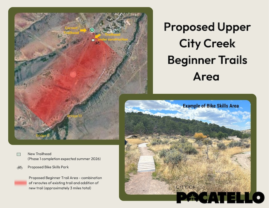 The City of Pocatello is seeking public input on an Idaho Department of Parks and Recreation Mountain Bike Plates grant application for mountain bike trail improvements at the Upper City Creek trailhead.