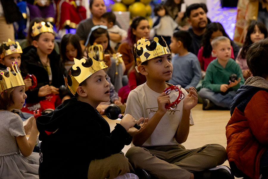 Children playing with mini tamborines as they sing along to songs of Dia de los Reyes. | Daniel V. Ramirez, EastIdahoNews.com