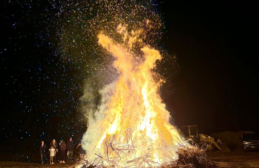 Following the indoor program, the celebration moved outdoors to a large community bonfire across the street, where attendees gathered to enjoy hot chocolate and visit with neighbors and friends.