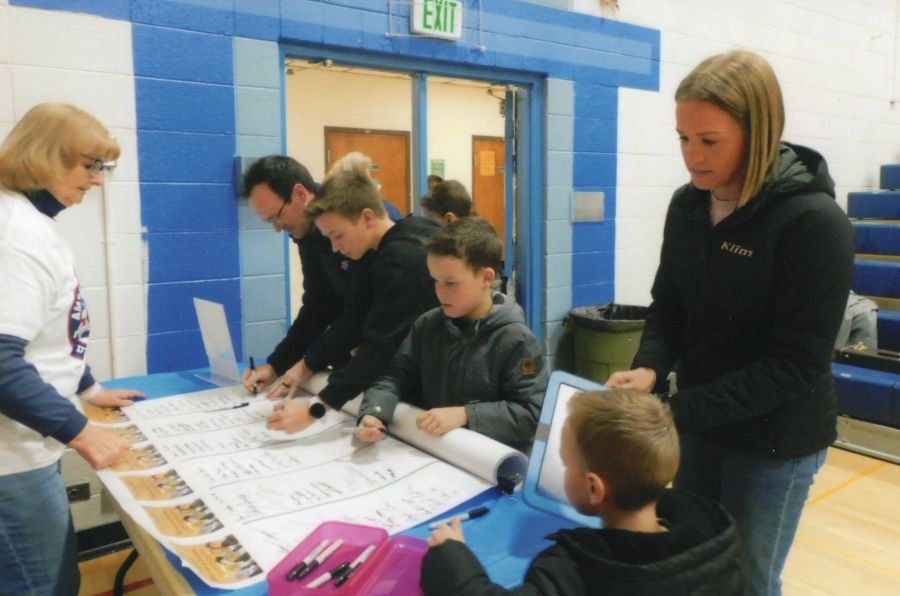 Attendees at the birthday celebration sign a copy of Idaho’s “Declaration of Independence.” | Photo courtesy of Leslie Mickelsen.