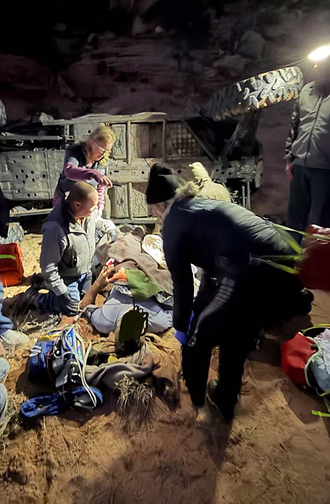 Deputy Lake, who was in the area, “rushed” to the scene and arrived to find the local Elements wilderness group had already lifted the side-by-side off the man and begun first aid. Elements is a wilderness therapy program for teens and young adults. Search and rescue personnel arrived to assist, and a medical helicopter was dispatched to the scene.