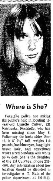 POCATELLO — On May 6, 1975, 12-year-old Lynette Dawn Culver left Alameda Junior High School during the lunch hour and never returned.