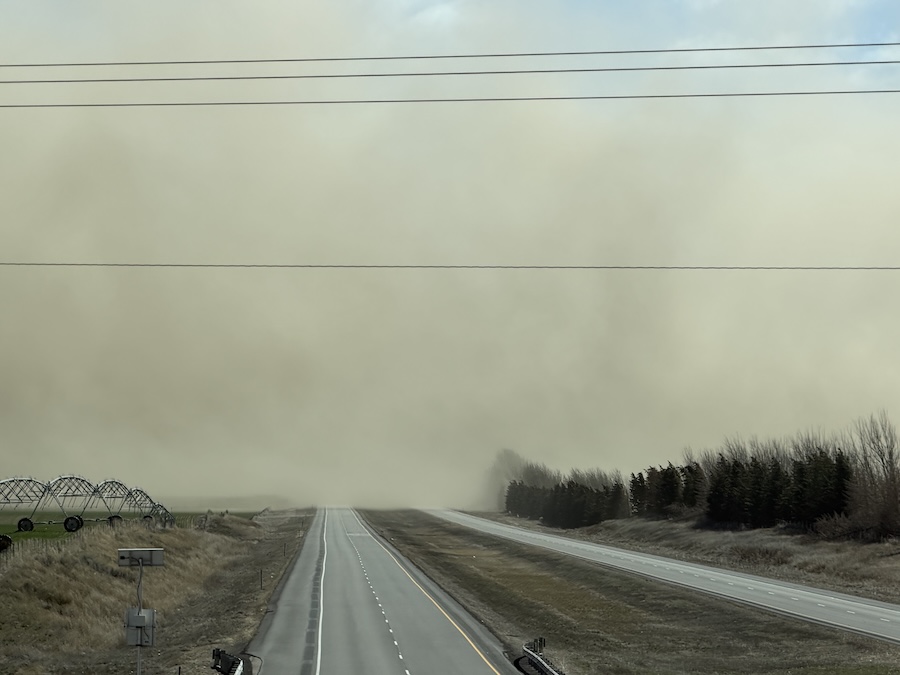 High winds whip up dust along I-15 north of Idaho Falls on Saturday creating very low visibility and forcing the closure of the freeway. | Idaho Transportation Department