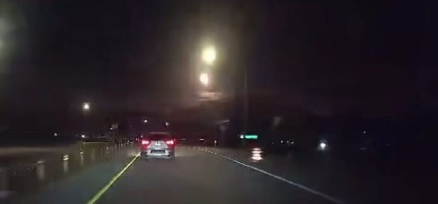 “I just see a light that’s really dim that started getting brighter, brighter (and) brighter. And I’m thinking to myself, ‘What is that?’ And it was kind of eerie at first,” he said. “And then just the whole sky — and all the roads and everything around me — lit up for like a fraction of a second. And then it was gone.”