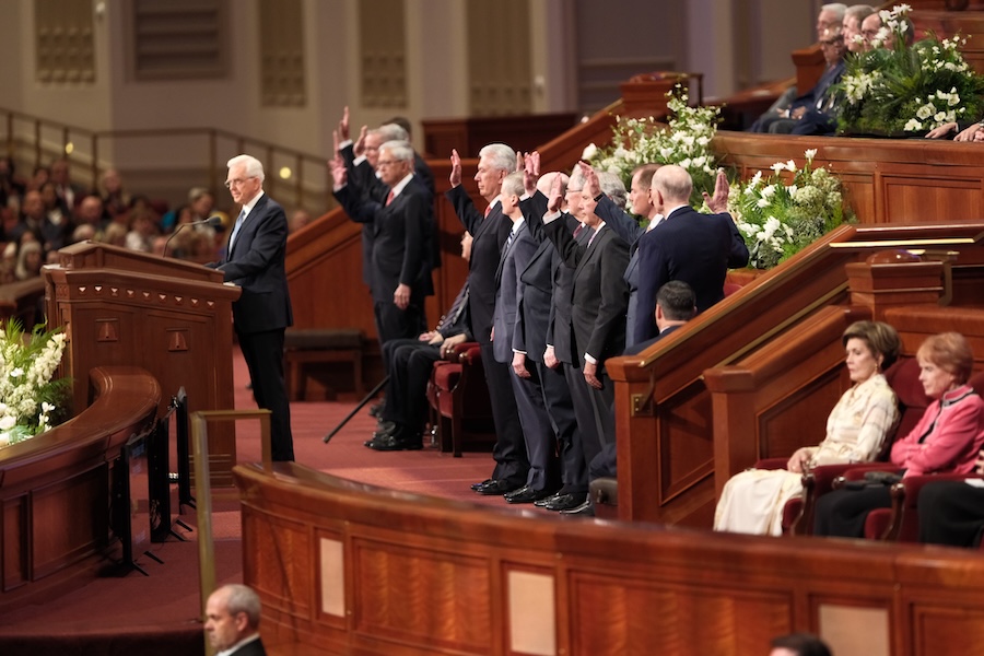 “It’s more than really just a ritualistic raising of the hand. It’s a commitment to uphold, support and assist those you’re sustaining,” he said. It is a “unique tradition” which makes this session of general conference historic.