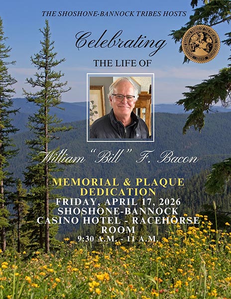 The Shoshone-Bannock Tribes will hold a memorial service for the life of William “Bill” F. Bacon on Friday morning, in addition to celebration of life held by the family that same day. Bacon, who served the tribes for over three and a half decades, is described in his obituary as “a tireless advocate for tribal sovereignty and a steadfast protector of the Tribes’ rights and future.”