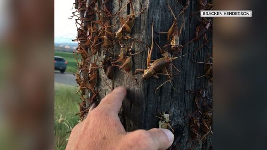 Mormon crickets make an early appearance just south of Idaho-Utah border