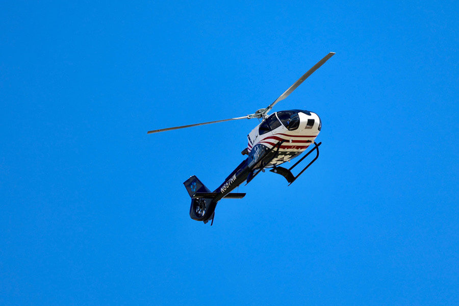 In addition to the helicopter, various armored vehicles are at the scene.