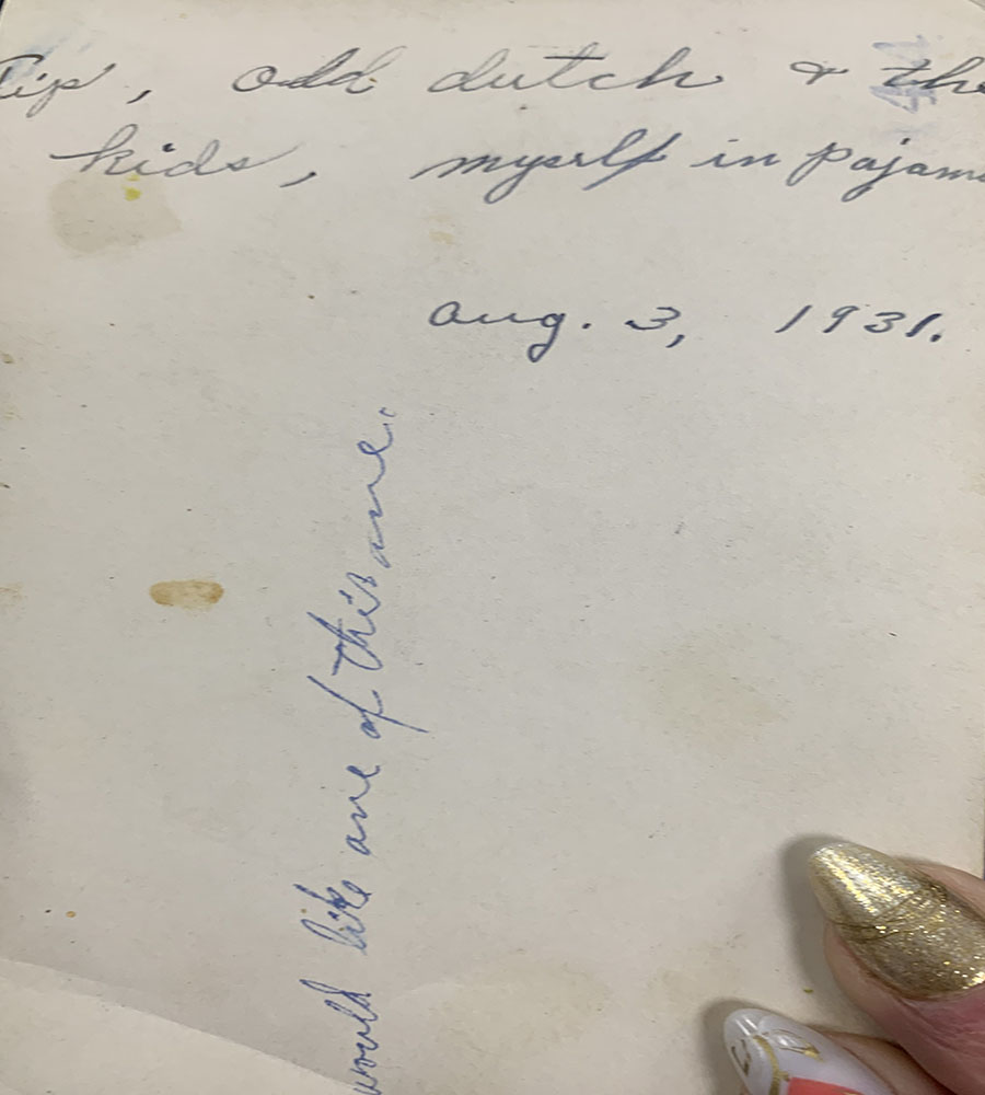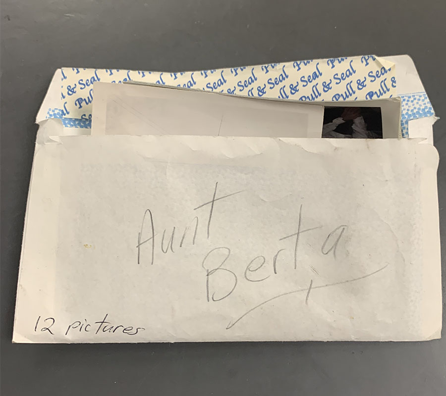 That’s when she learned there were a dozen pictures hiding inside a drawer. An envelope that reads “Aunt Berta” was also found with the pictures.